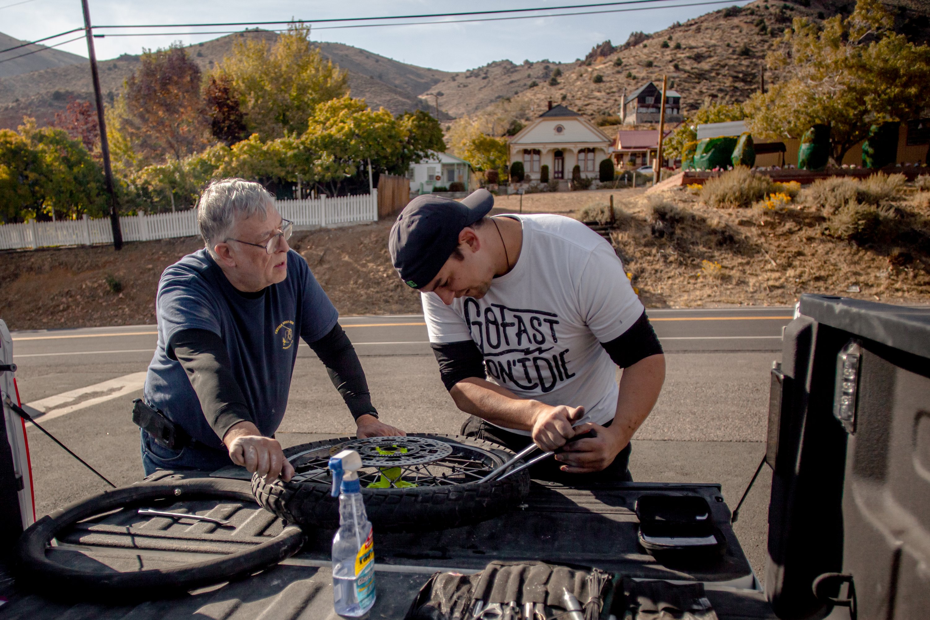 Thanks to minimal traffic, Brandy having errands to run, and my z1000 having no problem slipping into triple digits, grand total time lost was only about 15 minutes, but the 2 hours we spent in virginia city swapping a tire tube was…. stereotypical of every maintenance task my dad and i have ever done 😂: i just wanna throw it together, dad wants to torque his shoelaces to specifications noted in the Clymer Manual (based on a complete teardown and rebuild). It sounds like a headache, and at the time it feels like it, but its truly an effective symbiotic exercise. I make him go faster, and he makes sure I haven’t tied my shoes to each other. I have the benefit of my dad’s grief to apply and share with you now: