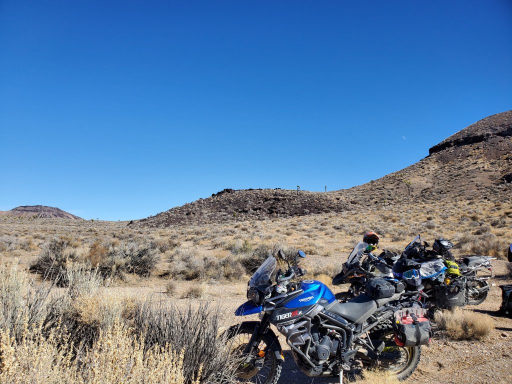 I was late to the adventure Thursday night. Driving through the desert on my way to Beatty, Steve and Josh were already out scouting the easy routes, while Cait explored the pavement only routes on her trusty Moto Guzzi. At 7pm, rolling into Beatty, I could sense the slight concern in Caits texts about not hearing from either Josh or Steve in several hours. Now that I was with them in the same scenario, I could only imagine how close she actually is now to calling search and rescue.