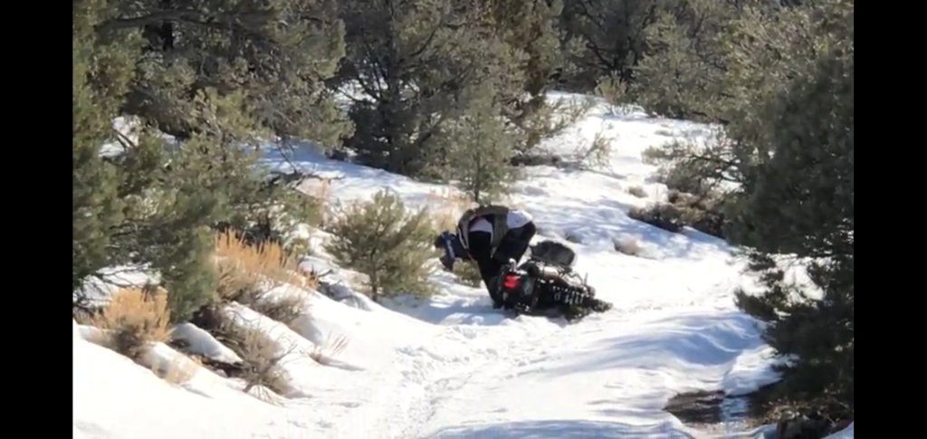 We get to the bottom of the hill and realize Josh’s….everything… was starting to cramp up. He can’t get through the snow more than a few hundred feet before his WarPig takes a dive into the snow. Steve and I decide to go off trail into the sage brush to maintain momentum, because the snow was just too deep to ride through. Steve sets off ahead to find a path, while I go back to help Josh get up to where we are.
