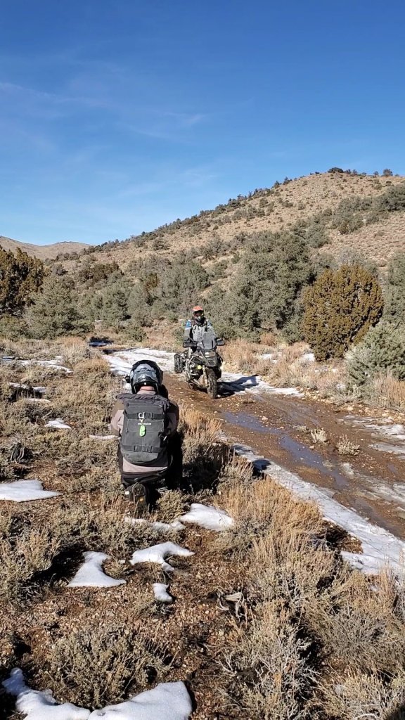 We didn’t need to be in that valley. The path we were forcing ourselves uphill through snow and mud and cold was already an established branch of the Nevada Backcountry Discovery Route. Had there been no snow, we would have passed that entire area in maybe 10 minutes. 4 of those minutes would have been deciding to go left or right at the bottom of the valley. Both of which lead us down to route 266 in Lida.