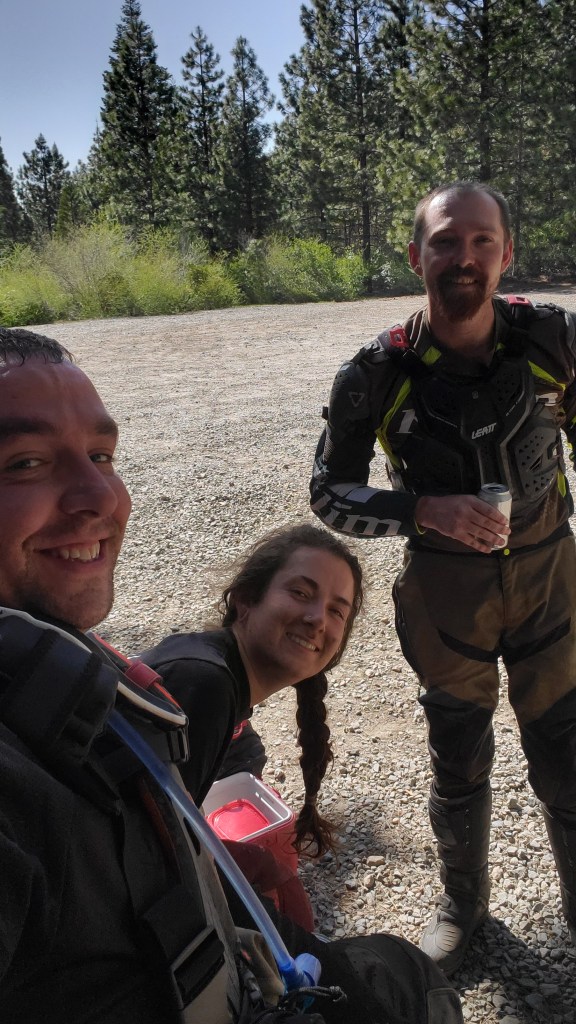 1 bleeding finger, a broken chain tool, and a few hours later, Annie and her fresh chain and rear sprocket, our friend Kelly on his same-era CRF450r, a re-geared borrowed 450x, and I drive the hour away into the mountains to ride single track.